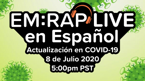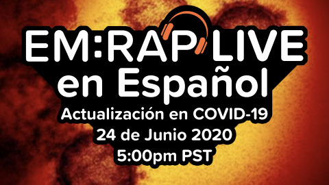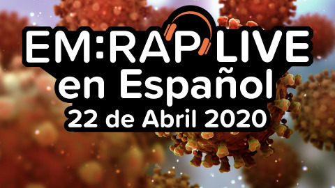 ¡Acompáñanos en el primer capítulo de EM:RAP Live en Español! Este miércoles 22 de Abril, a las 5pm CLT daremos inicio a una serie de episodios de actualización de COVID-19 en Español, con especialistas y académicos de distintos países de habla hispana. En esta primera oportunidad, tendremos como invitados al Dr. Pascual Piñera, Urgenciólogo de Madrid, quien nos comentará su experiencia con la Pandemia en uno de los países más fuertemente afectados por el Coronavirus, y al Dr. Greg Moran, especialista en medicina de urgencia y enfermedades infecciosas de UCLA, quien nos presentará una actualización de terapias farmacológicas en COVID-19, además de un grupo de especialistas latinoamericanos, quienes nos hemos unido en los últimos años para el desarrollo académico de nuestra especialidad en Latinoamérica. Expositores: Dr. Pablo Aguilera, Santiago de Chile. Dr. Alonso Miguel, Santiago de Chile. Dr. Greg Moran, Los Ángeles, Estados Unidos. Dr. Pascual Piñera, Madrid, España. Dr. Manrique Umaña, San José, Costa Rica. Dra. Isabel Velasco, Villarrica, Chile.